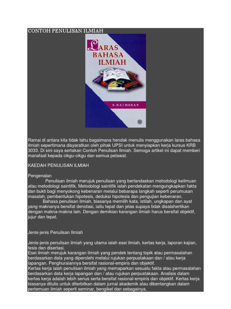 Ramai di antara kita tidak tahu bagaimana hendak menulis menggunakan laras bahasa ilmiah sepertimana disyaratkan oleh pihak upsi untuk menyiapkan kerja kursus krb 3033. Artikel sendiri bisa ditemukan di website, koran, majalah, dan masih banyak lainnya. Mengapa harus dilakukan?if your research does not generate papers, it might just as. Tinjauan/ulasan ilmiah hasil gagasan sendiri : (berlaku untuk penulisan tugas akhir program d3, s1 s.d.