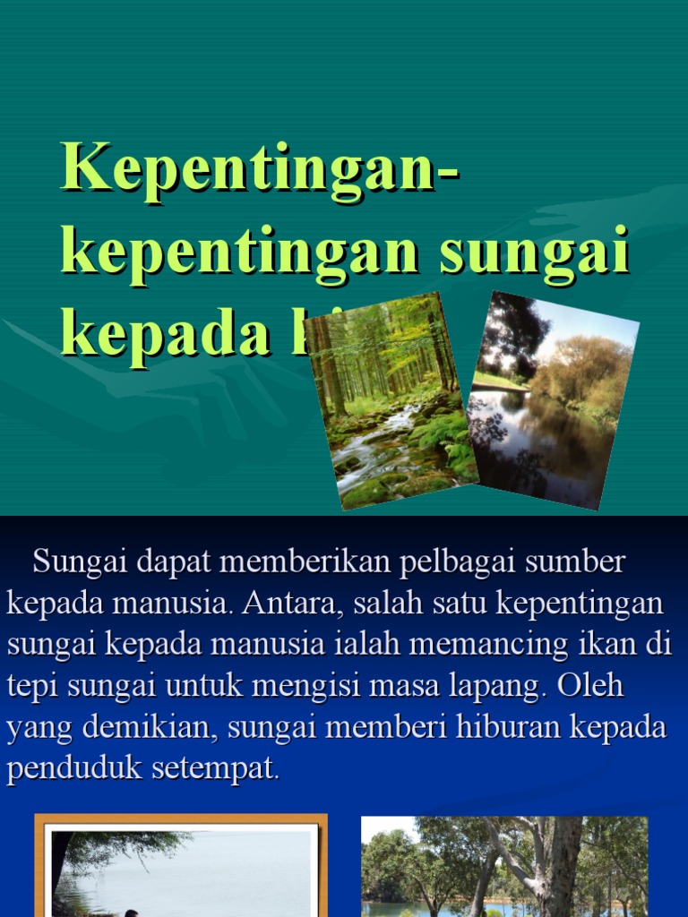 Kepentingan Sungai from imgv2-1-f.scribdassets.com Terdapat 49 batang sungai utama di malaysia yang menjadi sumber kepada lebih 90 % bekalan air minuman negara. Sebagai contoh, pemilik umumnya mencari untung besar. Oleh yang demikian, sungai memberi hiburan kepada penduduk setempat. Banyak yang berpandangan bahwa alam dapat dilihat sebagai objek, alat, dan sarana untuk memenuhi kebutuhan dan kepentingan manusia. Layari dan langgan modul pembelajaran. Malaysia amat bertuah kerana dianugerahkan banyak sungai. Manusia diciptakan di muka bumi ini sebagai khalifatullah fiil 'ardh. Manajemen sumber daya manusia juga memiliki fungsi sebagai pelatih sekaligus penasehat.