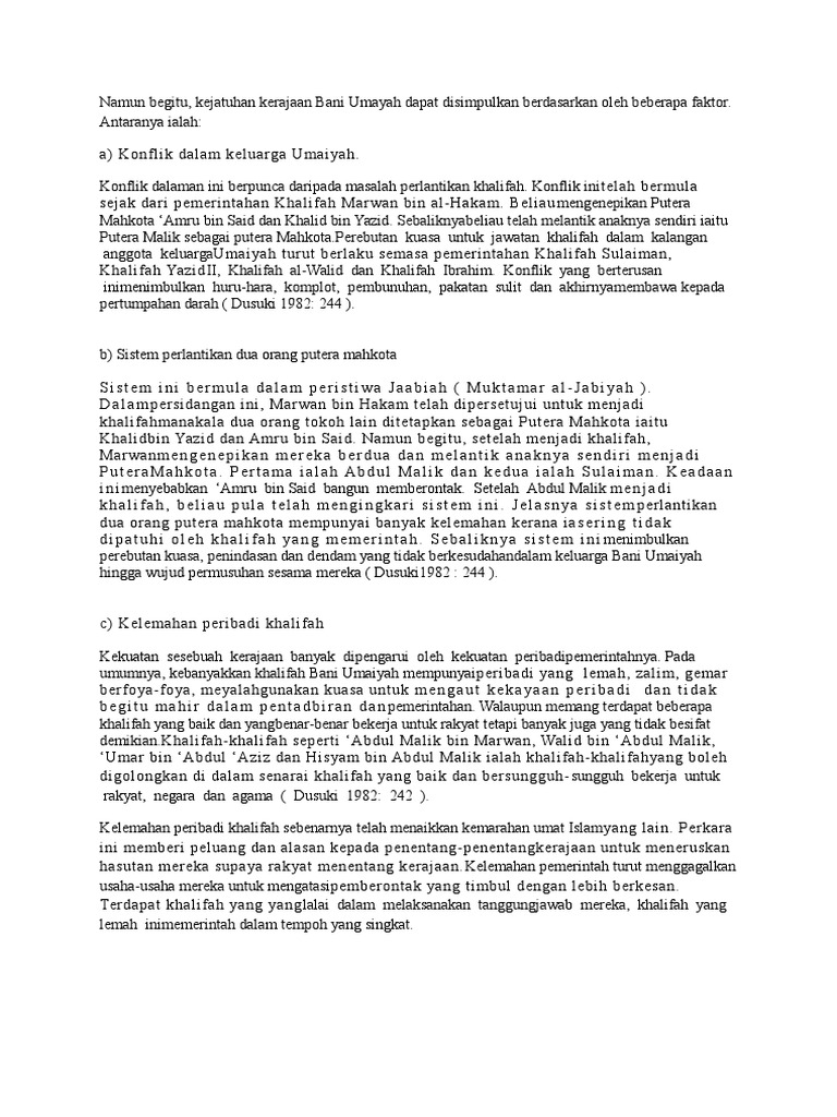 Doc Kerajaan Bani Umayyah Nur Fadhlina Academia Edu from 0.academia-photos.com Faktor kejatuhan kerajaan bani umaiyah. Memerintah kerajaan bani umaiyah dengan menjalankan pentadbiran slideshow 5319174 by lamis. Faktor kejatuhan kerajaan bani umayyah. Syarat saidina hassan kepada muawiyah. Sistem pergantian khalifah melalui garis keturunan adalah kerajaan ini sering menghasut penduduk agar membuat kerusuhan dan menentang kekuasaan islam. Pemerintah lalai dan tidak menjalankan tugas. Faktor kejatuhan bani umayyah docx faktor kejatuhan bani umayyah 1 2 3 4 5 6 7 kelemahan pemimpin semangat kesukuan dan asabiyyah sistem perwarisan course hero. Muawiyah tidak mentaati isi perjanjiannya dengan hasan ibn ali saat dia naik tahta.